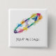 Ein Regenbogensicherheits-Button-Abzeichen, mit dem Raum, zum Ihrer eigenen Mitteilung/Namens/Slogans darunterliegend zu setzen. Die Kunst ist ein Hand-gezeichnetes Button, mit unordentlichen Farbe Blobs in den hellen Farben.
