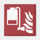 Schaumstoffanwendungseinheit und Flammensymbol auf rotem Hintergrund.
