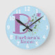 Kinderschlafzimmeruhr. Kinderschlafzimmer Uhr. Das Design bietet Monogram & Name mit Blume beiderseits in einem pastellfarbenen Aquarell-Stil. Beispielname ist Barbara. Ändern Sie den Namen nach Wunsch für jeden, der einen Namen hat, der mit B beginnt.