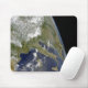 Blick auf den Western Mittelmeer mit sichtbarem Rauch auf dem Balkan und Staub aus der Sahara Wüste mit Halbkreis dargestellt.