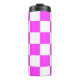 Sichtbarer Fliesenhintergrund Weiß und Pinka Thermosbecher