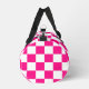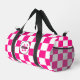 Markierte, geometrische Retro-Monogramm-Taschen in weiß und Hot Rosa. Coole Mode Accessoires Tasche für jedermann. Cooles geometrisches rechteckiges Muster in Retro. Vintag geflieste weiß rosa modernes Schachbrett. Erstellen Sie eine einzigartige und personalisierte Tasche mit einer benutzerdefinierten Touch! Modernes Monogramm mit Ihrem Initial und Ihrem Namen für diesen persönlichen Flair.