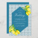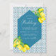 Sicilian Blue Tiles Summer Lemon Boho Wedding Einladung