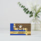 Hinter einem blauen Cover befindet sich das Gold-Logo oben, gefolgt von Ihrem renommierten Namen, den Kontaktdaten und einem Slogan zur Bekanntmachung Ihrer Dienste.