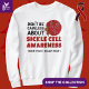 Stylish Seien Sie nicht sorglos über SICKLE ZELLEN AWARENESS Support Sweatshirt mit CUSTOMIZABLE TEXT, um das Bewusstsein für Sichelzelle und ihre Verbreitung in der schwarzen Gemeinde zu erhöhen. Der Aufklärungsmonat für Sichelzellen findet im September statt, der Welttag zur Aufklärung von Sichelzellen findet am 19. Juni statt, der mit dem 19. Juni zusammenfällt. Die Sichelzelle ist ein genetischer Zustand, der die roten Blutkörperchen des Körpers beeinflusst. Leidensopfer können sich oft schmerzhaften Episoden unterziehen. Zeigen Sie Ihre Unterstützung für Familie und Freunde, die diese Bedingung haben und tun Sie Ihren Teil, um das Bewusstsein zu schärfen. Sie können den Text unten mit Ihrer eigenen Unterstützungsnachricht PERSONALISIEREN. Weitere Variationen dieses Designs sind bei Berean Designs erhältlich. Auch schwarz.