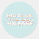 Add some humor to your day with this “Sorry I’m late, I was doing side quests” sticker! Featuring a bold retro-style design, it’s perfect for gamers, introverts, and anyone who knows the struggle of getting distracted by side quests. Great for laptops, water bottles, notebooks, or gaming setups, this sticker is a fun way to show off your personality and love for gaming culture.