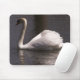 Dieser behält majestätische männliche Schwan Swims aber ein nahes Auge auf seiner Frau, die auf dem Nest in der Nähe sitzt.