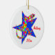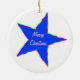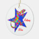 Whimsical Sidney Salamander sieht aus, als ob er gerne auf diesem strahlend blauen Stern schwingt. Spaß bunt fantasievolle Interpretation Design auf wahren Weihnachtsschmuck für Kinder und Erwachsene. Der gesamte Text kann in der Vorlage personalisiert sein. Originelle Kunst und Design von Anura Design Studio.