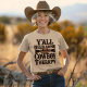 Sie brauchen alle einen Cowboy-Therapy-T - Shirt. © T-Shirts & Sweats bei Zazzle. Dieser Tee hat die Meldung "Y'all need some cowboy therapy" auf ihm.