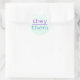Pronoun Aufkleber mit einer lustigen Drehung: ein Minzhintergrund mit pastellfarbenem, variierten Text. Ideal für trans, enby, Gender Fluid oder nicht konforme Menschen, deren Pronomen sind sie/ sie! Sehen Sie sich unsere anderen Aufkleber für alle an: Eine Normalisierung ihrer Verwendung für alle ist eine großartige Unterstützung. Arbeitet auf eckigen und runden Aufklebern.