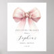 Sie bindet das Brautparty-Willkommensplakat mit einem rosa Bogen. Passend zu jedem Artikel unserer Kollektion für eine trendige feminine Coquette Ästhetik.