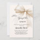 Ein zartes beige, cremefarbenes Dekor, das mit einem Bogen geschmückt ist. Personalisieren und fügen Sie einen Namen und Party-Details hinzu. Text: Sie bindet den Knoten.
