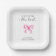 Einfache und elegante Aquarellfarbe rosa Bugcoquette "She's Tying the Knot" Brautparty personalisierte Papier-Teller.