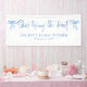 Sie bindet das Personalisierte Brautparty-Banner. Elegante handgeschriebene Kalligraphie mit blauen Aquarellbogen auf weißem Hintergrund. Ideal für ein Coquette Brautparty Thema. Personalisieren Sie Ihre Daten mit einem Namen und Ereignisdatum. © Kimbellished, LLC