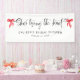 Rot, weiß und schwarz "She's Tying the Knot" personalisiertes Brautparty-Banner. Elegante handgeschriebene Kalligraphie mit roten Aquarellbogen auf weißem Hintergrund. Personalisieren Sie Ihre Daten mit einem Namen und Ereignisdatum. © Kimbellished, LLC