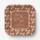 Sie bindet die Knot Personalisierten Brautparty Papier Teller in Terracotta + Sand Palette. Elegantes handkalligraphisches Schriftzeichen mit einem niedlichen Rundumbogenmuster. Personalisieren Sie einfach die Vorlage mit Ihrem Veranstaltungstitel und -datum. © Kimbellished, LLC