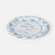 Sie bindet die Teller des Knot Personalisierten Brautparty in einer blauen + weißen Palette. Elegantes handkalligraphisches Schriftzeichen mit einem niedlichen Rundumbogenmuster. Personalisieren Sie einfach die Vorlage mit Ihrem Veranstaltungstitel und -datum. © Kimbellished, LLC