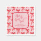 Sie bindet das Knot Personalisierte Brautparty Personalisiert Napkins in Rot + Rosa. Elegantes handkalligraphisches Schriftzeichen mit einem niedlichen Rundumbogenmuster. Personalisieren Sie einfach die Vorlage mit Ihrem Veranstaltungstitel und -datum. © Kimbellished, LLC