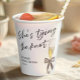 Einführung "She's Tying the Knot" Watercolor Black Bow Brautparty Paper Cups, entworfen von CaMiDesigns. Diese reizvollen Papiertassen zeichnen sich durch ein zartes Aquarellblau-Bogen-Design aus, das Ihren Brautparty-Feiern eine elegante Touch verleiht. Diese Tassen eignen sich ideal, um Getränke bei Ihrer Veranstaltung zu servieren. Sie verbinden Stil und Komfort und machen sie zu einem Muss für jede Ansammlung der Braut. Für Bestellungen, Versand, Produktinformationen und weitere Hilfe, wenden Sie sich bitte direkt an den Zazzle Kundenservice, um Touch zu erhalten.
