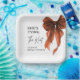 Sie bindet den Knoten Orange Schleife Brautparty Pappteller