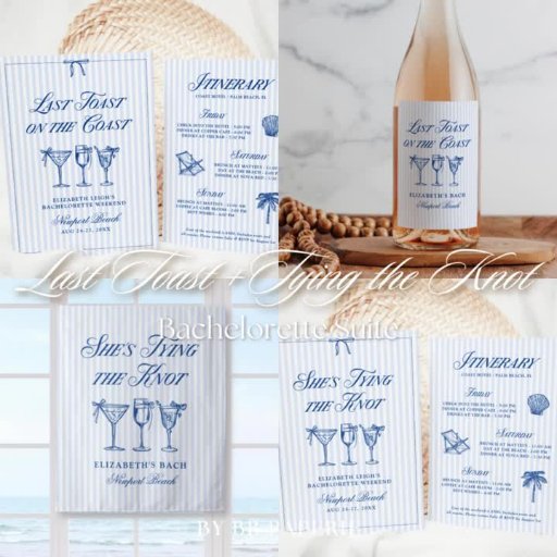 Dieses elegante "She's Tying the Knot"-Design ist perfekt für einen Strand- oder Küstenbachelorette-Fest. Das Design besticht durch ein wunderschönes Thema am Meer, einen stilvollen Schriftart und eine raffinierte Gestaltung, die Ihre Gäste sicherlich beeindrucken wird. Auf der Rückseite der Einladung finden Sie alle Wochenenddetails für den Junggeselinnen-Abschied, sodass es für Ihre Gäste bequem, ihre Reise zu planen und sich an den Spaß zu beteiligen. Egal ob Sie eine Zeremonie am Strand oder einen Empfang an der Küste planen, lassen Sie sich von diesem einzigartigen und charmanten Design verzaubern, das das Wesentliche eines Festes am Meer einfängt.