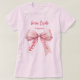 Ein eleganter, zarter, rosa Hintergrund, mit einem rosa Bogen verziert. Personalisieren und einen Namen hinzufügen. Text: Team Bride. Sie bindet den Knoten.
