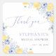 Elegante runde Aufkleber, entworfen mit Wasserfarbe-Zitronen und staubblauen Blumen. Ideal zum Verschließen von Umschlägen, Dekorieren von Geschenken oder Hinzufügen eines zusammenhängenden Zitrus-Touches zu Ihrer Brautparty-Dekoration.