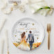 Ein elegantes Brautduschdesign mit einer Braut und ihrem Honig in einem Sonnenblumenfeld und eleganter Kalligrafie.