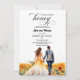 Ein elegantes Brautduschdesign mit einer Braut und ihrem Honig auf einem Sonnenblumenfeld und eleganter Kalligrafie.