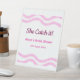 Sie fängt es rosa Spiralfarbenlinien bridal Sockelschild