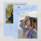 Moderne und whimsiwhimsche Abschluss-Einladungskarte mit einem gebogenen Foto auf der Vorderseite und einem auf der Rückseite. Der Text sagt "Sie glaubte, sie konnte, also tat sie es" mit handgezeichneten Sternen und einer Abschlussmütze. Fügen Sie den Namen des Absolventen, Informationen und eine Nachricht hinzu, um diese Karte zu personalisieren. Eisblaue Hintergrund.