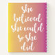 Braune Haut, natürliche Schönheit mit einer Baumwollkerzenfarben, eine geschichtete Halskette und Hoops. Auf der Rückseite steht das inspirierende Zitat "Sie glaubte, sie könne so, wie sie es tat".