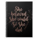 "Sie glaubte, dass sie könnte, also sie" ♥ Geschenk für ihr ♥ modernes Notizbuch tat (80 Seiten B&W) ♥ jugendlich Mädchen-Geschenk ♥ Geschenk für Chef ♥