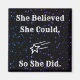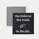 "Sie glaubte, sie könnte das tun", Inspirierte das Zitat von Frauen zur Stärke. Inspirationsmädchenmagnet für den Kühlschrank, die Schließfächer, die Schubladen usw. Schwarz-Weiß-Galaxie-Design.