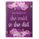 Sie glaubte, sie könne es, also Lila Blumen machen Notizblock