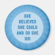 Dieser motivierend Magnet mit der Schrift, von der sie glaubte, sie könne und so tat sie es vor dem Hintergrund der blauen Sternexplosion, wird Ihnen helfen, sich an Ihre Überzeugungen im Alltag zu erinnern.