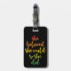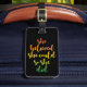 Dieses Gepäckanhänger-Design enthält das Zitat "She glaubved she can So She did" in rot, gelb und grün auf schwarzem Hintergrund.