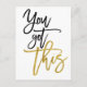 Geben Sie jemandem einen Schub und schicken Sie ihm eine Postkarte mit einer Botschaft der Ermutigung! Dies hat motivierend Wörter Sie Got Dies in der gold-schwarzen Typografie vor einem weißen Hintergrund, der auf eine andere Farbe geändert werden kann, wenn Sie es wünschen.