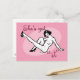 Eine lustige Hommage an das "it"-Mädchen, das in den 20er Jahren ideal war, eine Frau, die ihre Heelse vor einem Hintergrund aus dem Button hochwirft.
