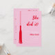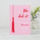 Celebrate an important milestone with our trendy and chic graduation party invitation! Featuring a feminine red and pink design, this invitation boasts a "She Did It!" text and a grad tassel, making it the perfect way to commemorate hard work and dedication. Add a personal touch by uploading a photo of the graduate, and customize the text to fit your event details. Whether it's a high school, college, or graduate school graduation, this invitation is sure to impress. Order yours today and get ready to party!