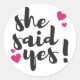 Sie hat Ja gesagt! Verlobungsfeier – Romantisch Runder Aufkleber
