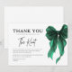 Drücken Sie Ihre Dankbarkeit in zeitlosem Stil mit dieser Karte "She's Tying The Knot" mit grüner Schleife zur Hochzeit aus. Entworfen mit einem schicken grünen Schleifenmotiv und moderner Typografie ist diese Karte die perfekte Abrundung, um sich nach einer Hochzeitsfeier, einem Verlobungsfest oder einem Hochheitswochenende bei den Gästen zu bedanken.