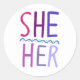 SIE / IHR Pronouns Lila Handschrift Set von Runder Aufkleber