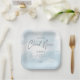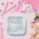 Sie ist auf Cloud neun Brautparty personalisierten Papier Teller, Pastel Aquarellwolken, grau moderne Drehbuch.