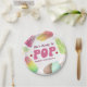 Sie ist bereit zum Pop einer Kinderdusche Pappteller
