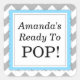 Sie ist bereit zum Pop Babyduschenaufkleber mit Zickzack Design. Passen Sie sich mit dem Namen der künftigen Mutter an! Ideal für Babydusche, Leckereien und mehr.