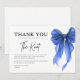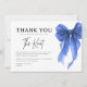 Drücken Sie Ihre Dankbarkeit im zeitlosen Stil mit dieser She's Tying The Knot Blue Bow Bridal Shower Dankeskarten aus. Mit einem schicken blauen Schleifenmotiv und moderner Typografie ist diese Karte die perfekte Abrundung, um sich nach einer Bridal Shower, einer Verlobungsfeier oder einem Hochzeitswochenende bei den Gästen zu bedanken.