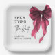 Sie knüpft den Knoten - Rote Schleife - Brautparty Pappteller