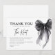 Drücken Sie Ihre Dankbarkeit im zeitlosen Stil mit dieser Karte "She's Tying The Knot" mit schwarzer Schleife und der Aufschrift "Bridal Shower Thank You" aus. Entworfen mit einem schicken schwarzen Schleifenmotiv und einer sauberen, modernen Typografie ist diese Karte die perfekte Abrundung, um sich nach einer Bridal Shower, einer Verlobungsfeier oder einem Hochzeitswochenende bei den Gästen zu bedanken.