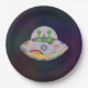 In dieser Spaß ScifI Illustration durch Richard H. Fay, reitet groovy grüne Außerirdische in einen Fliegen Saucer, der mit Blumen, Herzen, einem Stern und einem Regenbogen verziert wird.